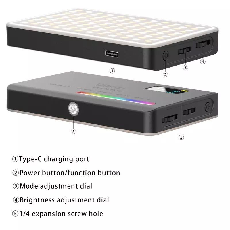 Alimentation Polyvalente : Alimentée par une batterie rechargeable ou par un adaptateur secteur, la lumière RGB Ulamzi est pratique à utiliser dans toutes les situations, que ce soit en studio ou en extérieur.